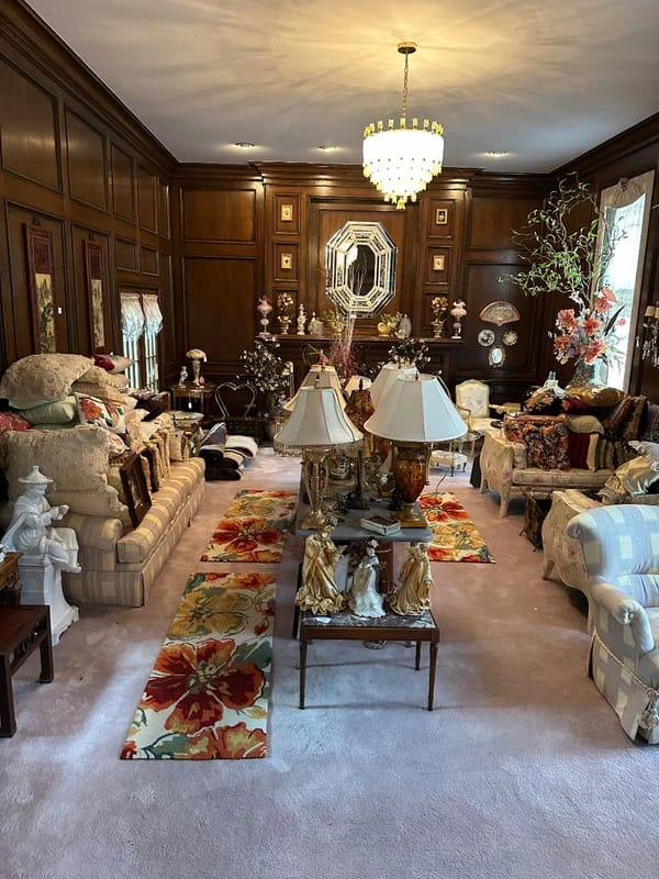 문제는 재산 정리 마지막 날까지도 팔리지 않는 물건이 산더미라는 거예요. 소파, 테이블, 빈티지 장식품, 예술품 등등.