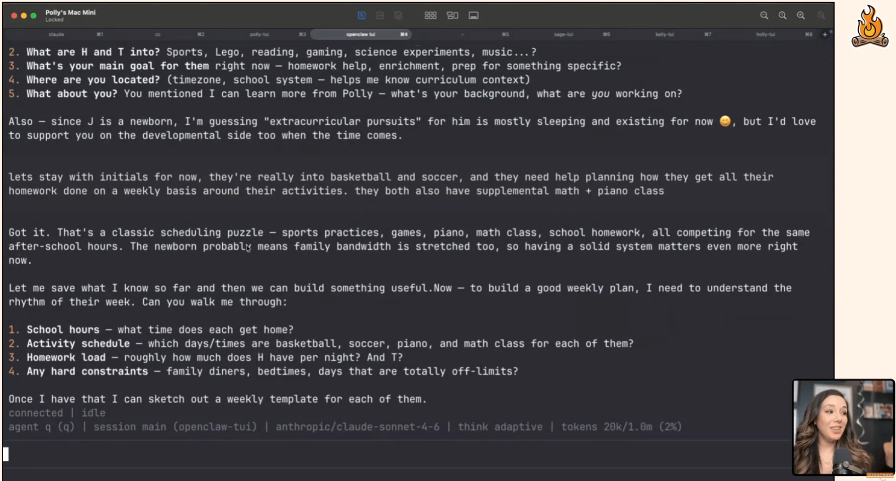 Q가 아이들의 학교 시간, 농구/축구 일정, 피아노/수학 수업, 숙제량까지 파악한 뒤 "주간 템플릿을 만들어주겠다"고 제안하는 모습. 갓 입사한 신입사원이 온보딩 첫날 업무 파악을 하는 것과 똑같다.