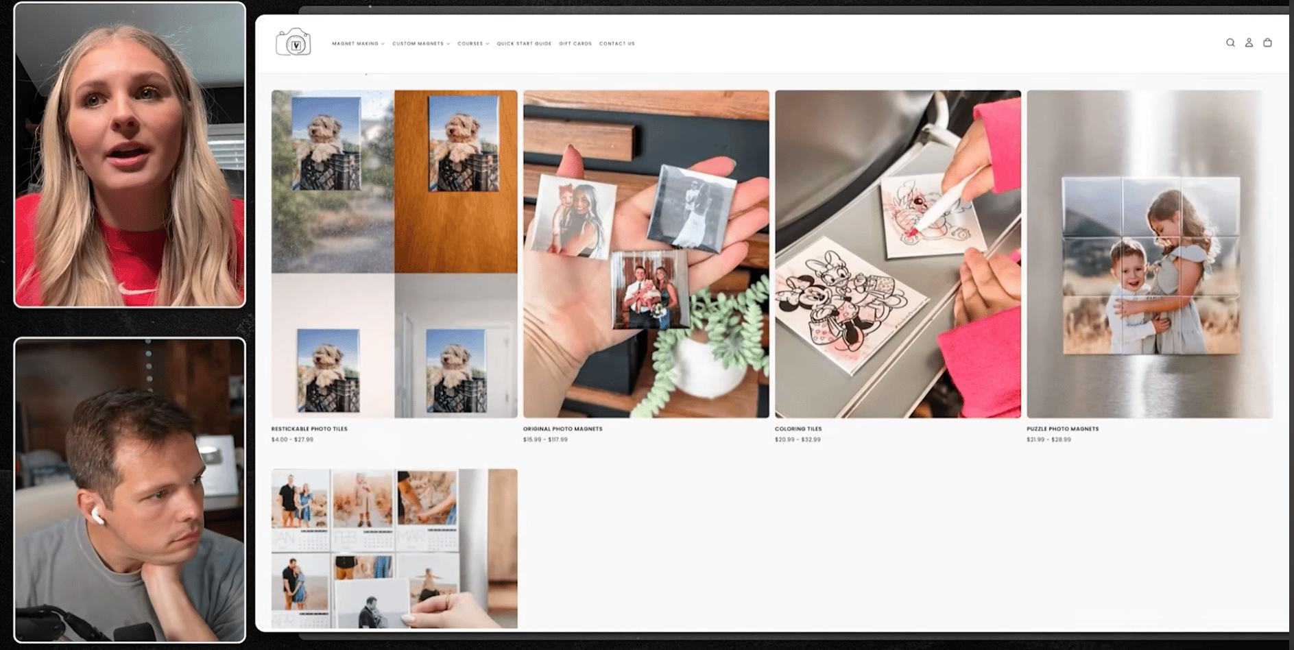 1) 온라인 판매 (Shopify) 마그넷 9개 세트를 25달러에 판매합니다. 개당 재료비는 인화지, 잉크, 자석 시트 포함 약 35센트. 가장 작은 사이즈 기준 마진율이 91%입니다. 첫 해 온라인만으로 163만 달러(24억) 매출을 올렸고, 순이익은 60만 달러(9억). 순이익 40%.