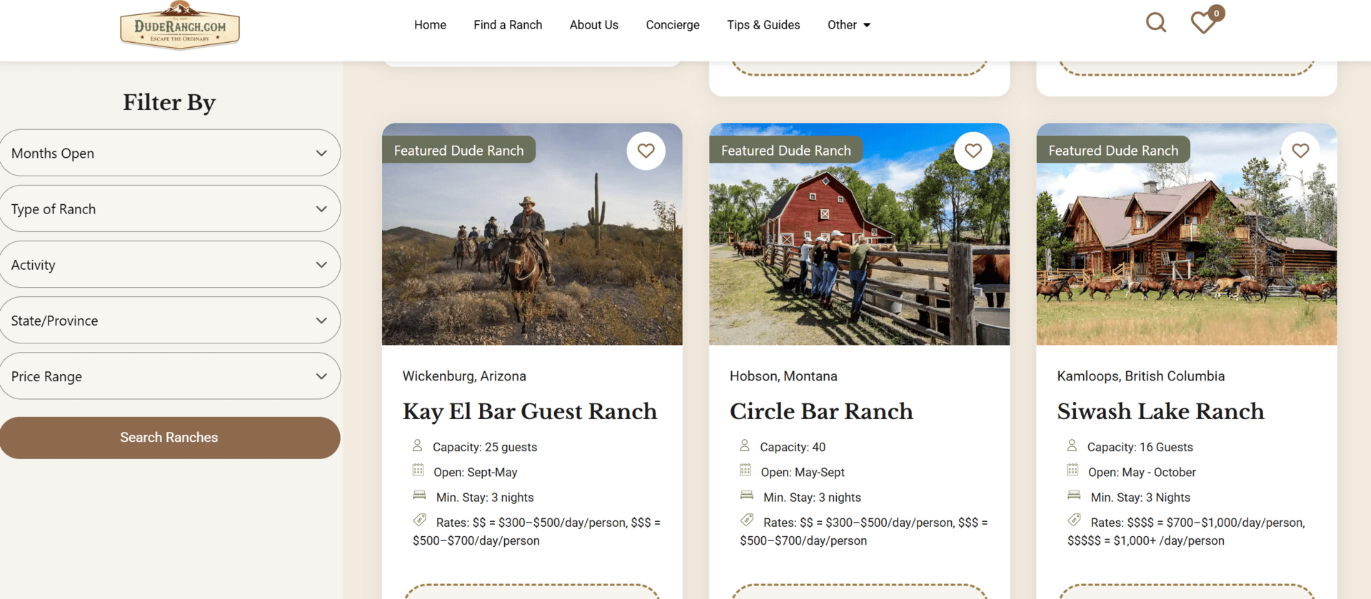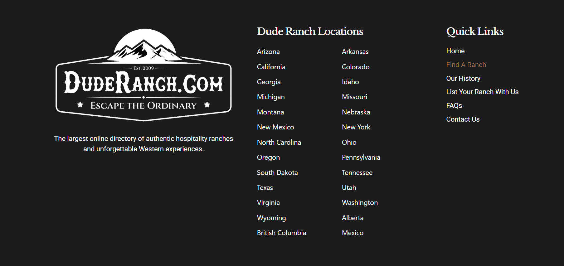 DudeRanch.com 미서부 체험형 농장 리스팅
