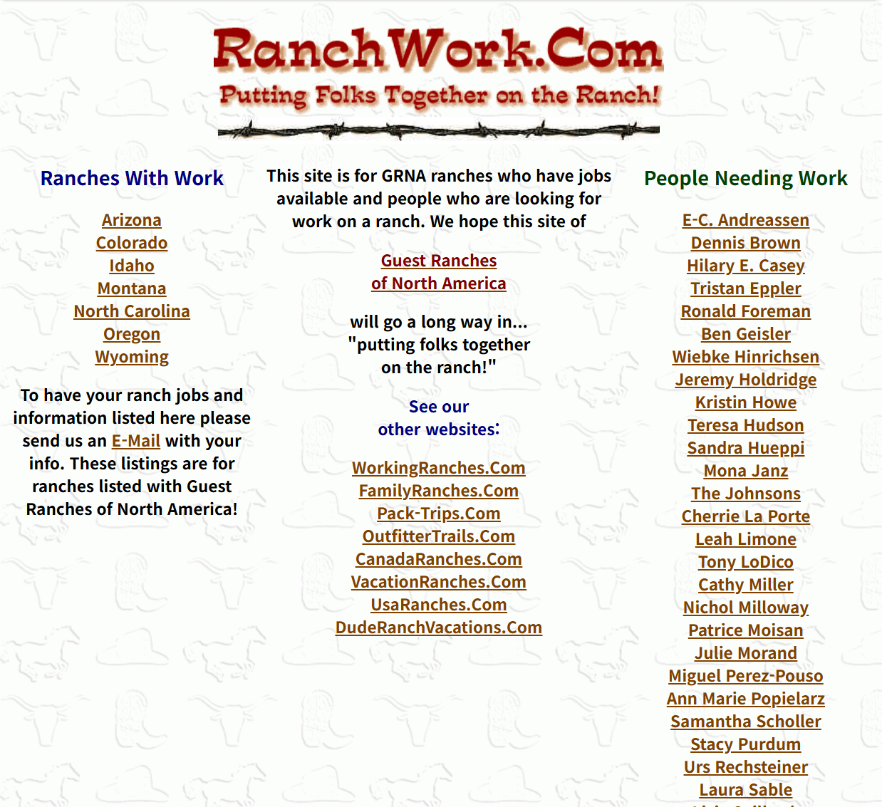 Peter가 소개한 또 다른 웹사이트는 RanchWork.com인데요. 이 웹사이트는 원래 1998년에 David라는 사람이 만들어서 운영하던 사이트였어요.